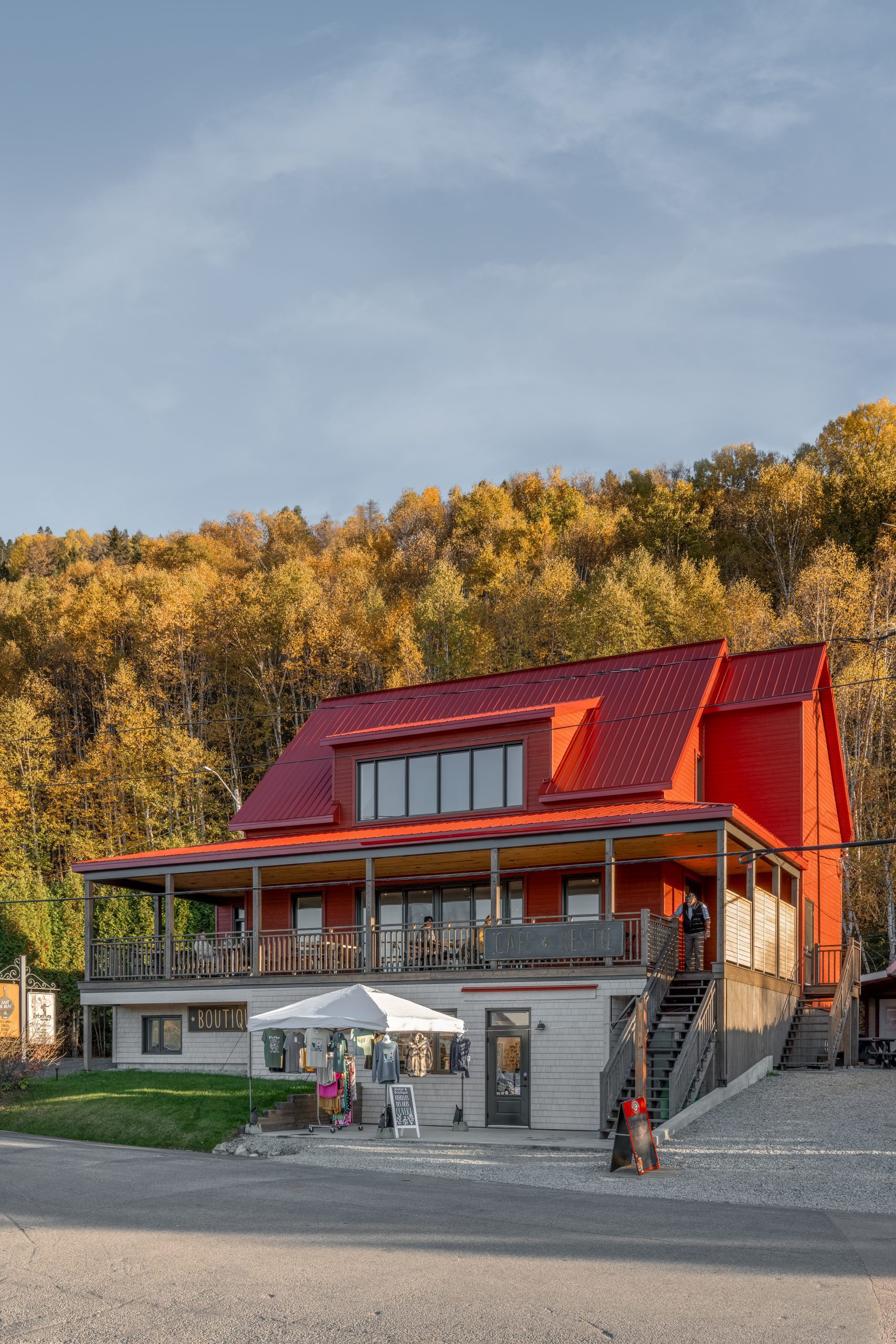 Nous avons imaginé un petit bâtiment monochrome, inspiré des maisons colorés qui bordent le fjord : une volumétrie simple, assumée, qui fait écho à l’architecture côtière d’ici.